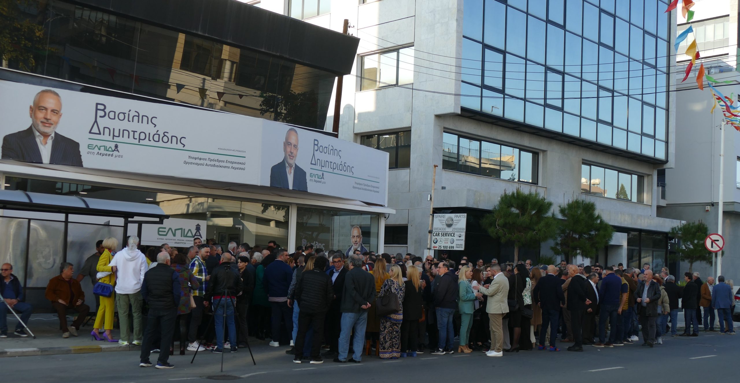 Με τεράστια επιτυχία πραγματοποιήθηκαν το Σάββατο 24 Φεβρουαρίου τα εγκαίνια του εκλογικού επιτελείου του Βασίλη Δημητριάδη, τέως Υφυπουργού Ναυτιλίας και Υποψήφιου Προέδρου του Επαρχιακού Οργανισμού Αυτοδιοίκησης (ΕΟΑ) Λεμεσού. Εκατοντάδες Λεμεσιανοί από την πόλη και επαρχία